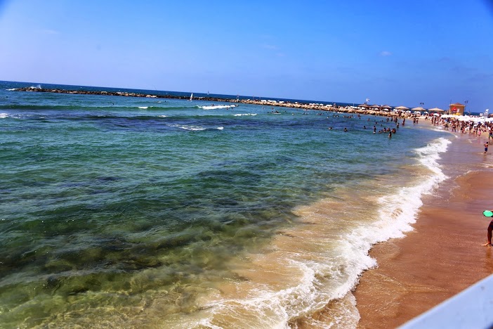 1. Ah oui, il y a du monde, mais tu peux facilement toruver un coin tranquille. Par contre tu vois clairement que les arabes se baignent sur une plage, et les juifs sur une autre, il y a pas trop de mélange (ils se baignent pas dans la même tenue). Et l’eau est un peu crade je trouve 😦