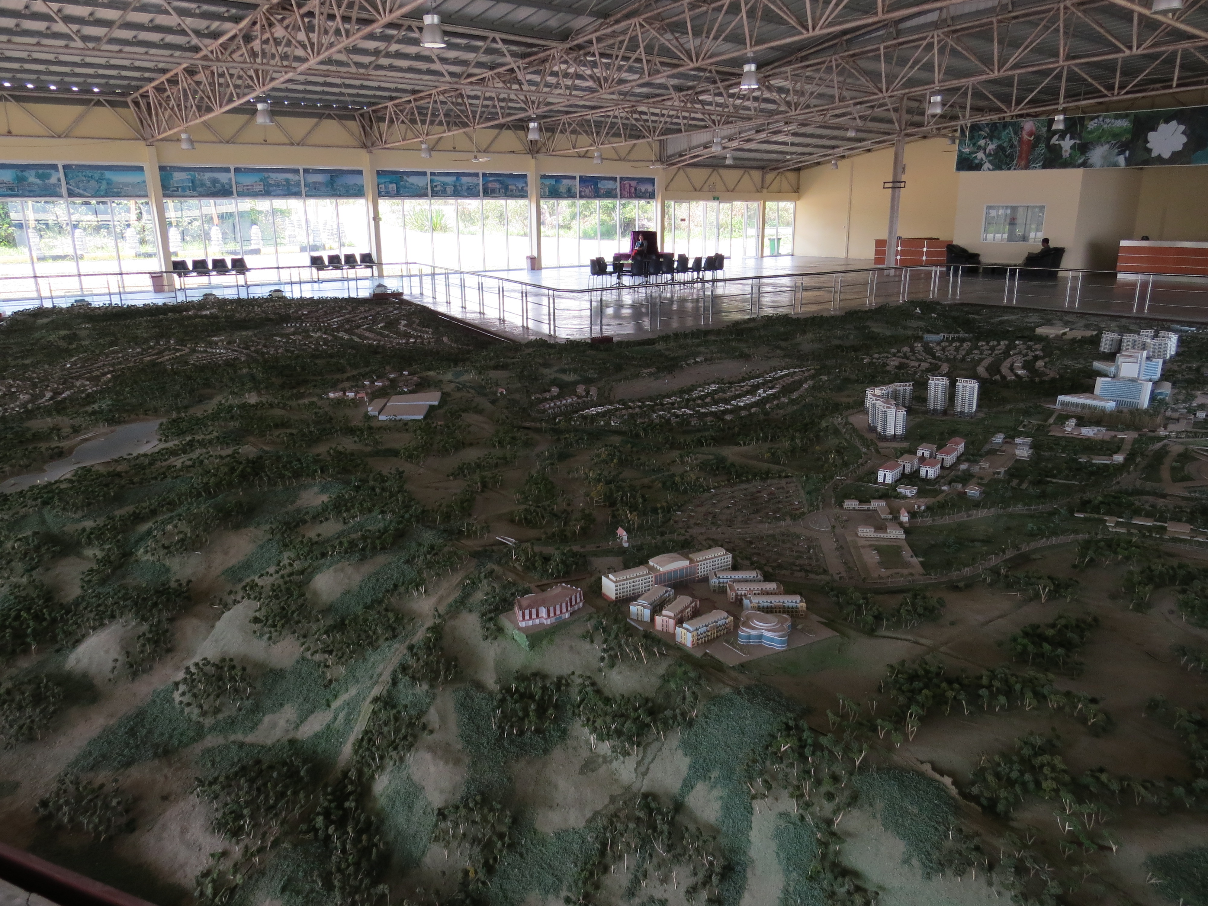 Passez le poste de contrôle (il parait qu’il faut s’enregistrer mais nous n’avons vu personne), et garez-vous sur le parking vide de l’immense showroom. Parcourir cette gigantesque maquette vous donnera une idée de l’envergure du délire mégalo des constructeurs de cette cité de Bokor. Même la salle est bien trop grande pour accueillir si peu de curieux.