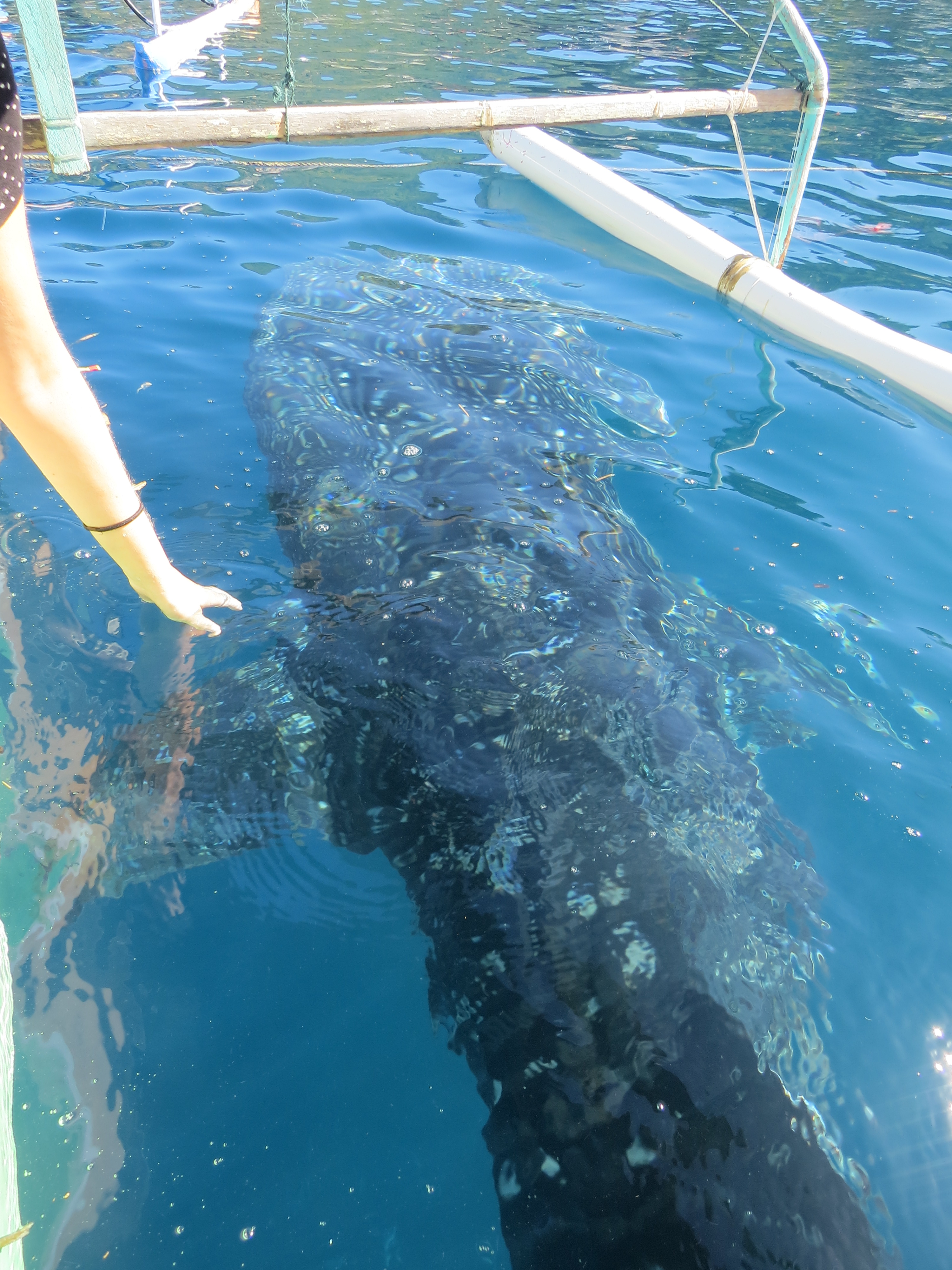 Pour information, les requins baleine se trouvent à une vingtaine de mètres de la berge, vous n’avez donc logiquement aucun besoin d’un bateau pour aller nager avec eux. Mais même sans louer de matériel ni de bateau, je ne suis pas certaine que l’on ne vous fasse pas payer quelque chose.