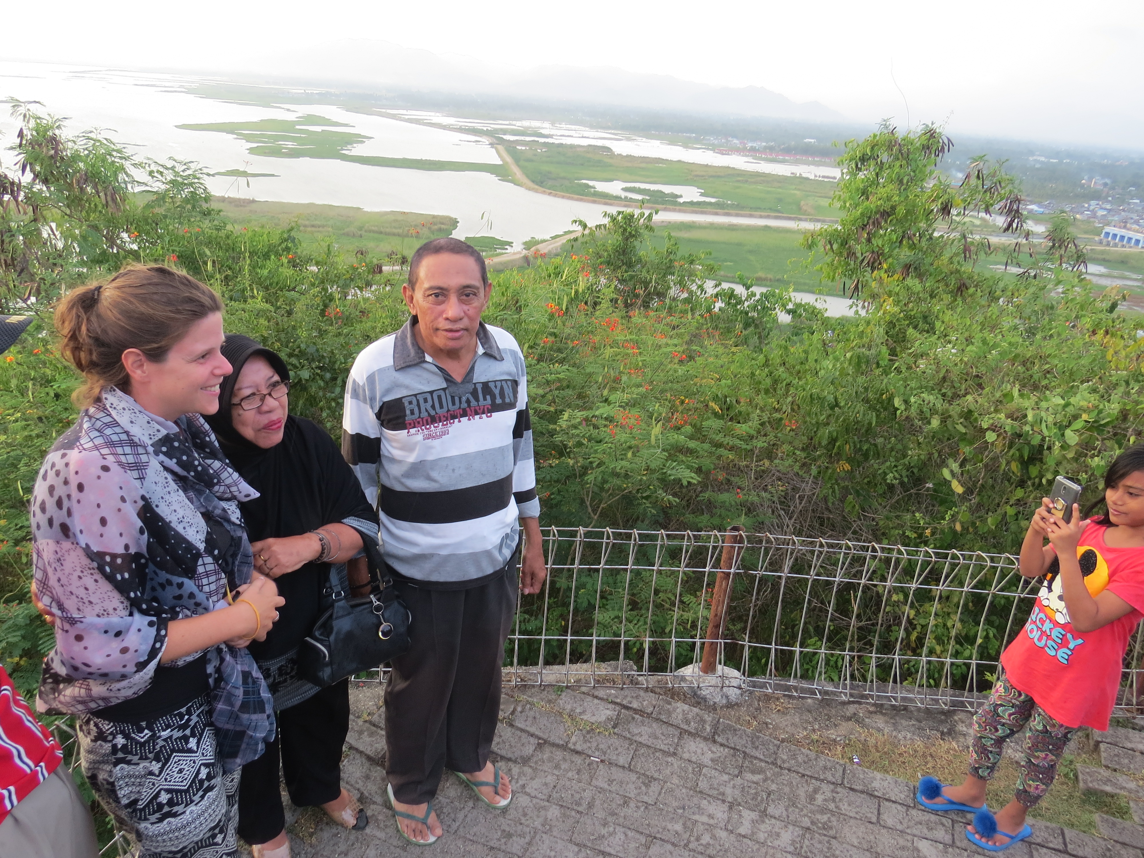 En fin d’après midi l’endroit était bondés de touristes Indonésiens. Nous y avons également retrouvé un couple franco-allemand que nous avions croisé à la station de bus de Manado, le monde est petit sur Sulawesi ! Cette visite s’est ponctuée de séances photos. A ce moment c’est bien nous qui sommes devenus l’attraction du lieu, volant la vedette aux vieilles pierres et à la vue majestueuse.