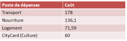 Notre premier poste de dépense reste le transport, qui pèse d’autant plus sur un séjour si court.
