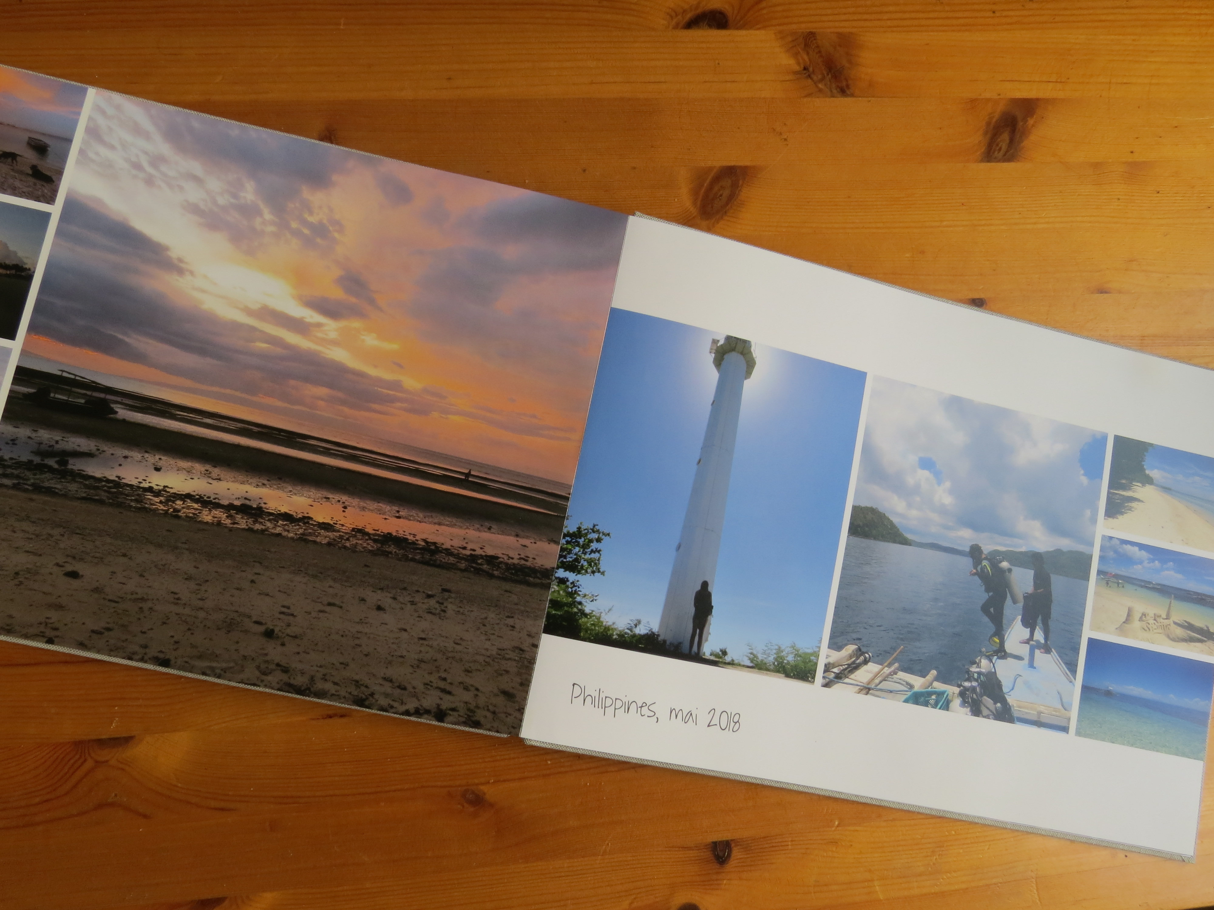 Nous avons opté pour un livre photo XL, car qui dit grand voyage, dit un nombre incalculable de photos, et donc un gros album photo. Trier nos milliers de photos nous a demandé du temps, et une patience infinie, pas mal de diplomatie aussi, lorsque l’un veut garder une photo et l’autre non. Ce sont près de 160 photos qui ont été sélectionnées. L’étape 1 était finalisée. Je passais à l’étape 2, l’organisation de l’album, pas une mince affaire mais un moment particulièrement agréable et créatif.