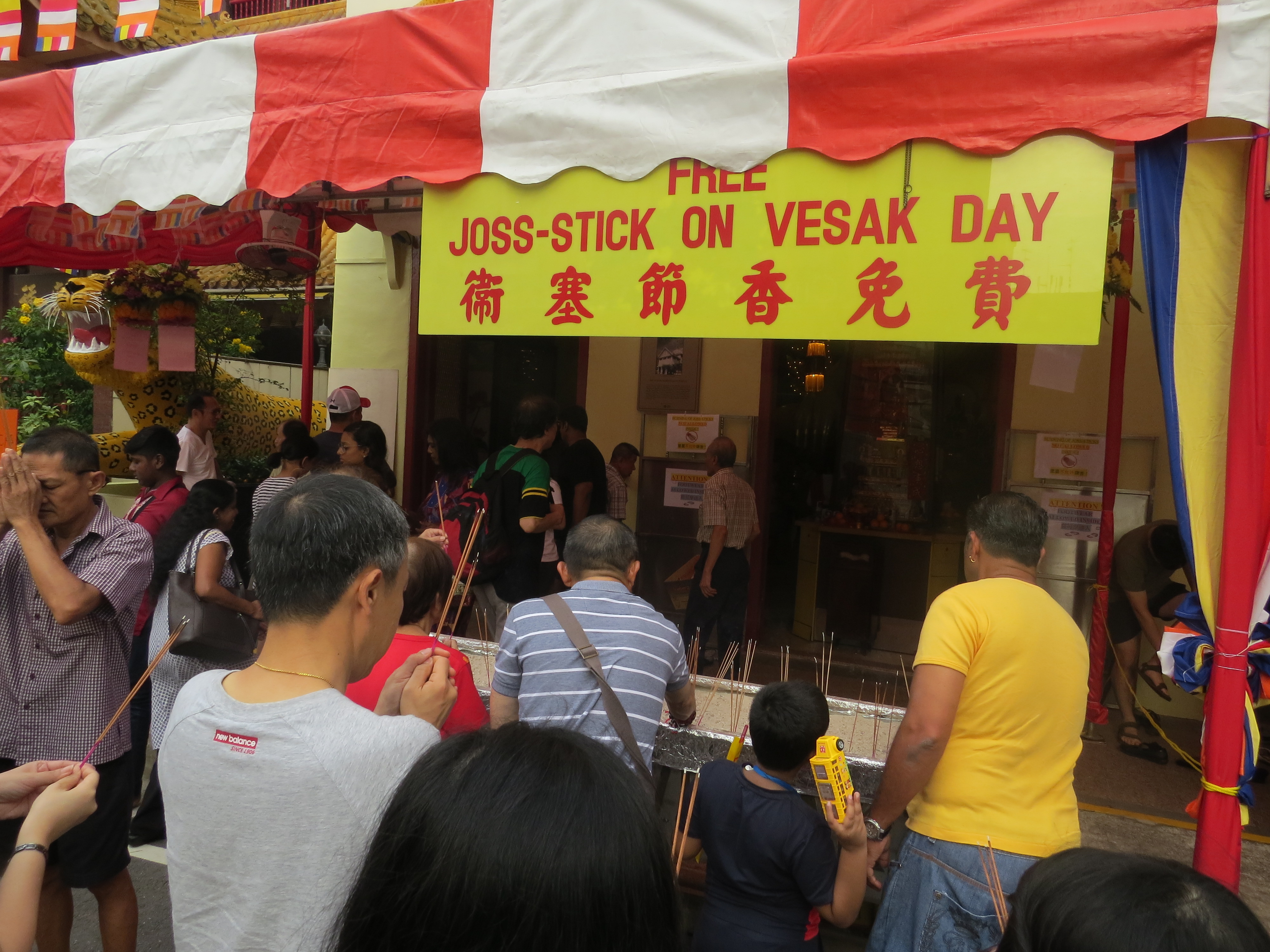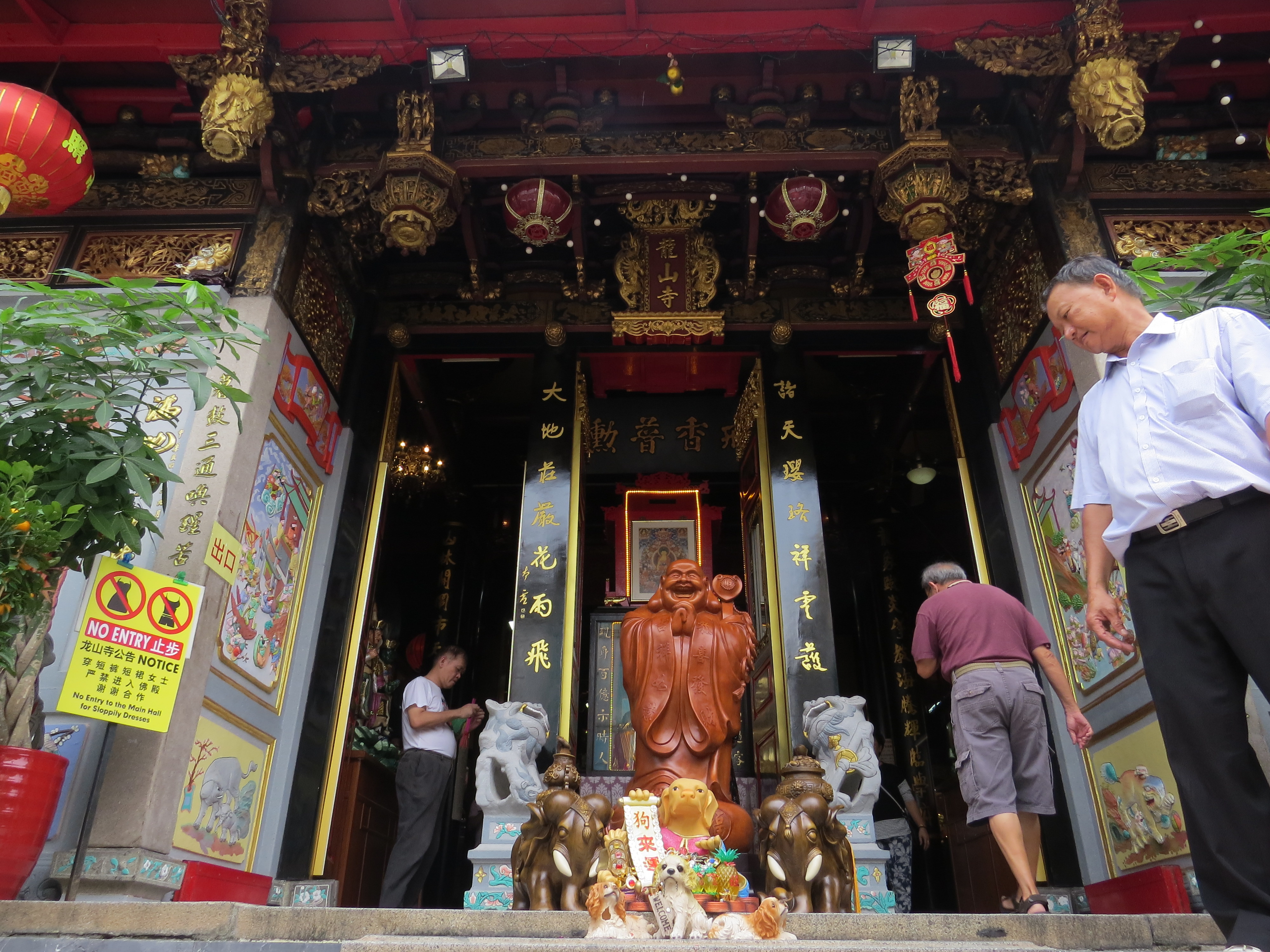 En ce jour de Vesak ou encore appelé Buddha Day car il s’agit du jour d’anniversaire du Bouddha Gautama, et pour faire bonne mesure, nous sommes allés visiter deux temples bouddhistes. Le temple Sakya Muni Buddha Gaya, célèbre pour son bouddha de 15 mètres de haut, était littéralement envahi par les fidèles venus se faire bénir par les moines (12$ la bénédiction quand même). Le Leong San See Temple, plus calme, vous propose un guide explicatif en Français pour comprendre la construction symbolique du temple.